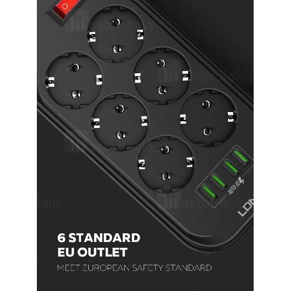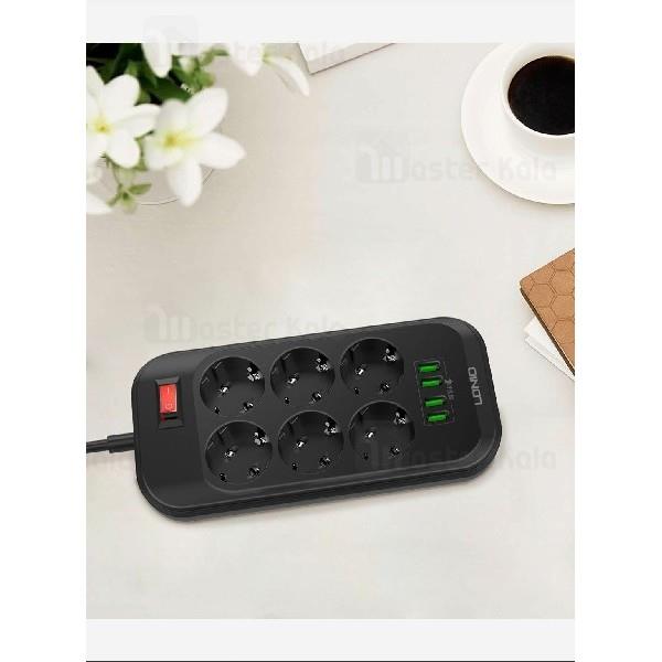 چند راهی برق و شارژ الدینیو Ldnio SE6403 Power Strip دارای 4 پورت USB