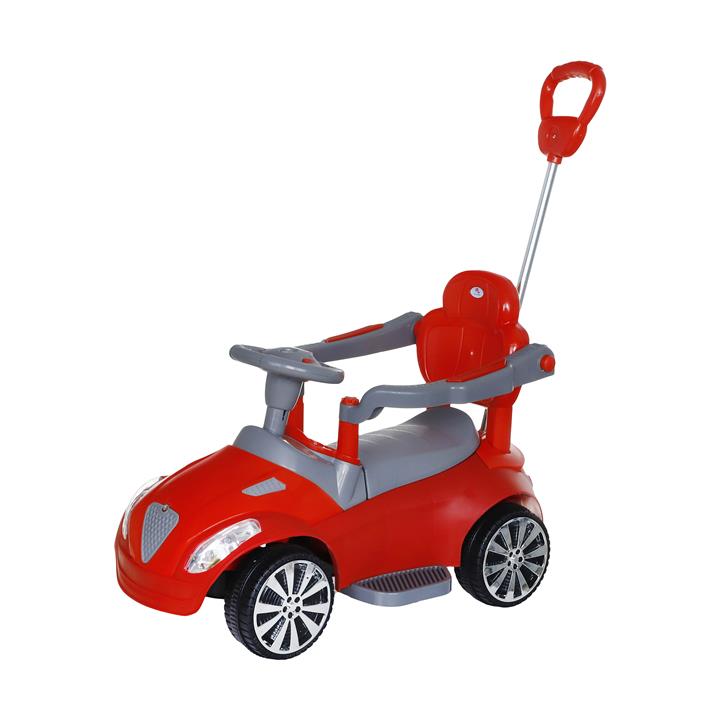 - جنس: پلاستیک پلی پروپیلن (P.P) - مناسب سنین 2 تا 5 سال - ظرفیت وزنی: 20 کیلوگرم - دسته فلزی با طول 60 سانتیمتر - پخش صدای موزیکال با فشردن دکمه روی فرمان (منبع تامین برق: 2 عدد باتری قلمی) - کنترل توسط والدین (دسته متصل به ماشین) - فرمان بدون قابلیت چرخش چرخها - باز و بسته شدن دستههای کنار صندلی - دارای محفظه باز شو زیر صندلی - وزن چهار چرخه: 5.5 کیلوگرم