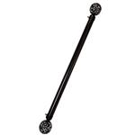 طول میله پرده 120 سانتی متر می باشد به همراه دو عدد قپه المپیک 10 سانتی متری که به عرض میله پرده اضافه می شود ، دو عدد پایه سقفی و 2 عدد پایه دیواری ، به همراه 4 عدد رول پلاک و 4 عدد پیچ