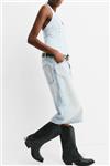 مشخصات فنی چکمه چرم مشکی طرح کابویی طرحدار پاشنه کوتاه مدل بلند زنانه پول اند بیر Pull & Bear (ساخت اسپانیا)