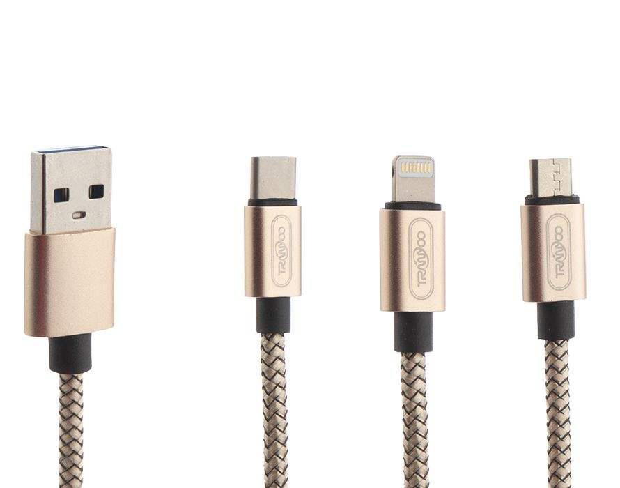 کابل تبدیل USB به microUSB / لایتنینگ / USB-C ترانیو مدل XS1 طول 1.2 متر