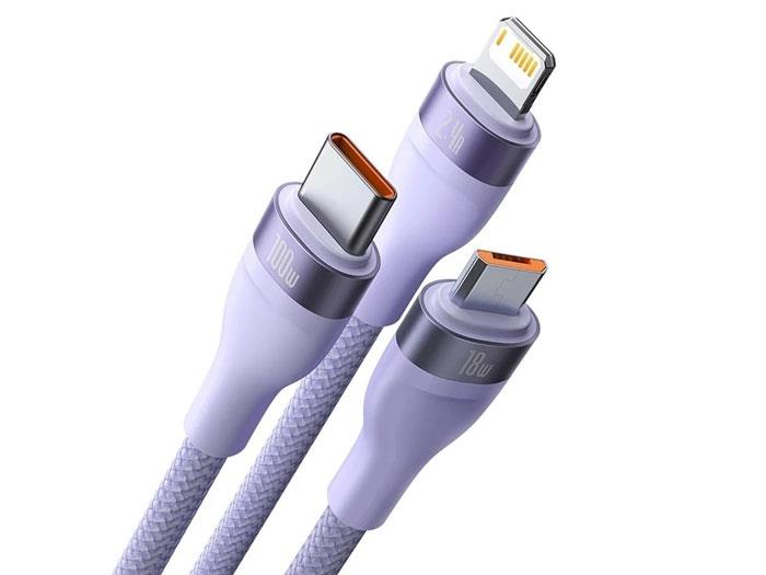 کابل شارژ و دیتا سهسر میکرو، تایپسی و لایتنینگ بیسوس Baseus Flash Series One-for-three Fast Charging Data Cable USB (CASS040001)