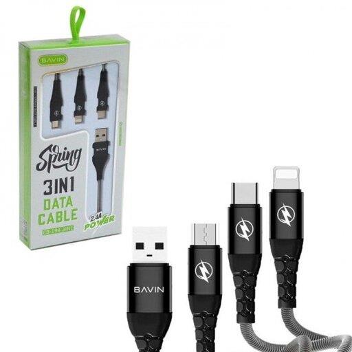 کابل شارژ 3 کاره اندروید و آیفون و تایپ سی باوین (BAVIN) طول 1.2 متر مدل CB-194-3in1\n\n