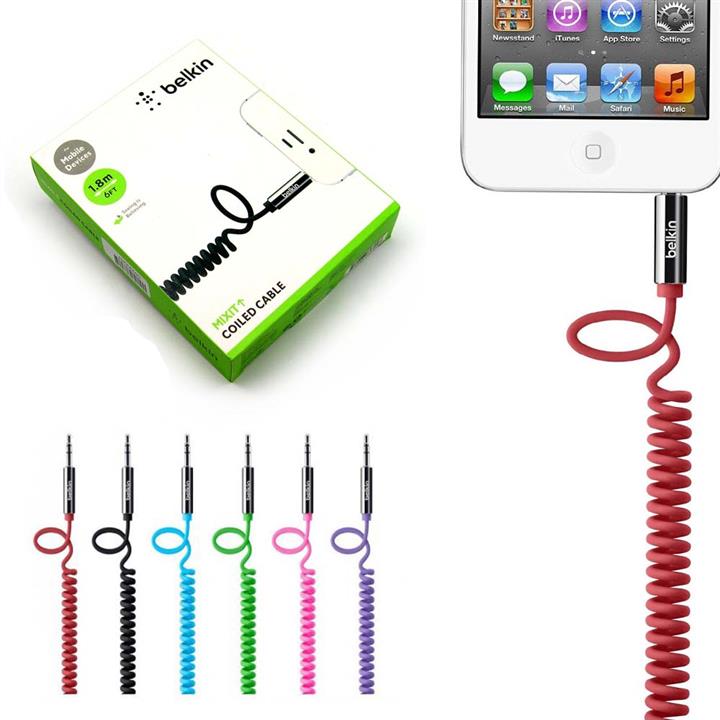 کابل AUX فنری سیم تلفنی اکلیلی هفت رنگ مدل belkin،دارای سری ...