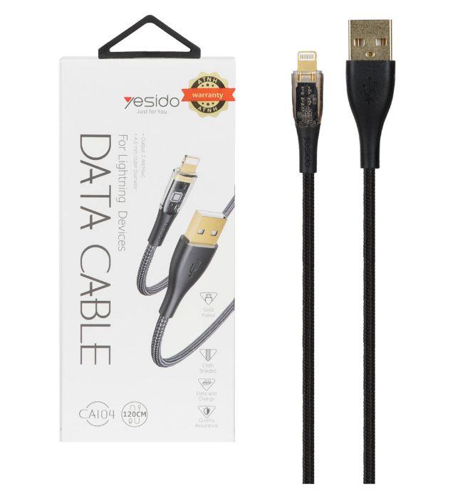 کابل USB به لایتنینگ یسیدو YESIDO CA104 طول 1.2 متر 2.4 آمپر