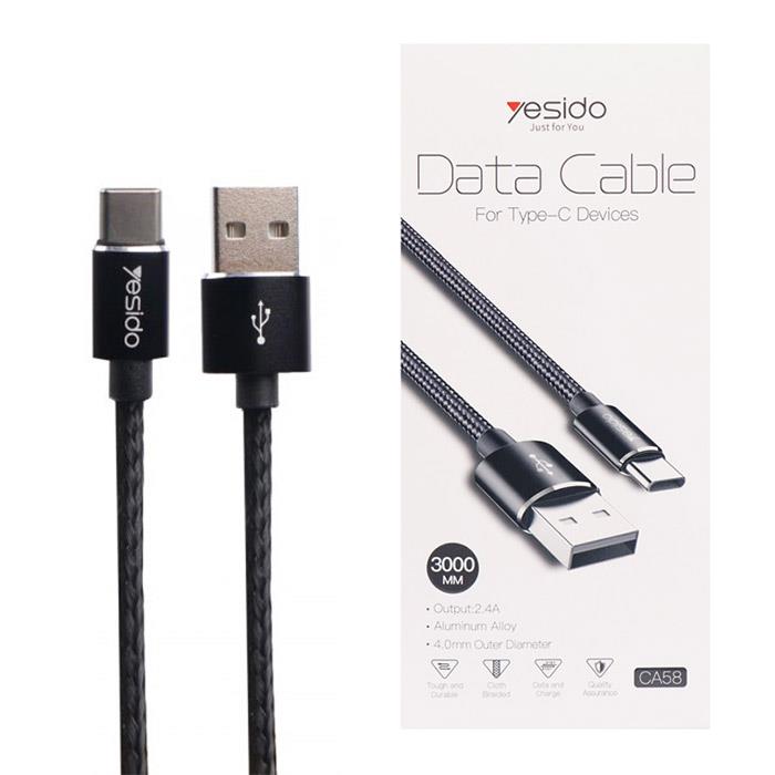 کابل USB به Type-C یسیدو مدل CA58 طول 3 متر 2.4 آمپر