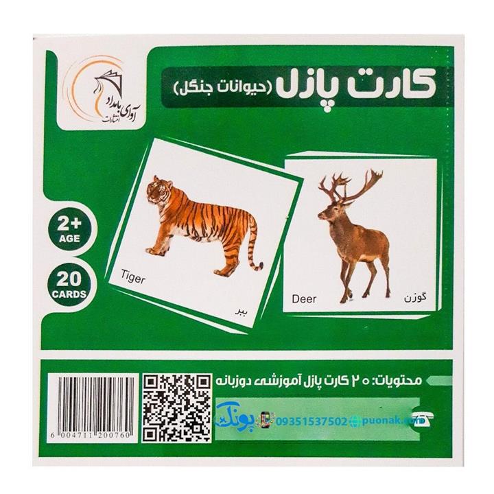 کارت آموزش حیوانات جنگل مدل کارت پازل انتشارات آوای بامداد (20 کارت پازل آموزشی دو زبانه)
