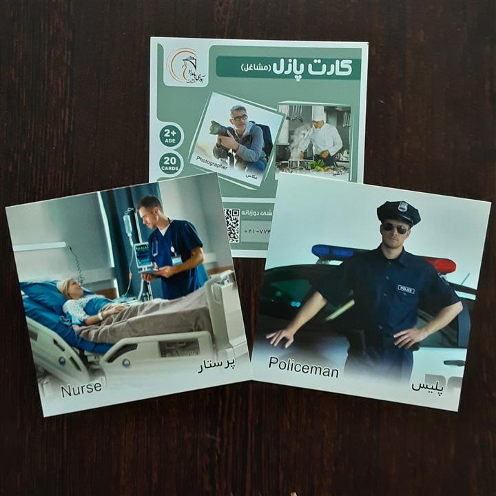 کارت آموزش مشاغل مدل کارت پازل انتشارات آوای بامداد (20 کارت پازل آموزشی دو زبانه)