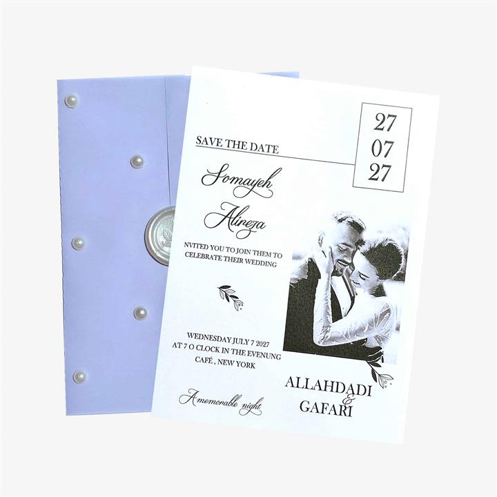 کارت عروسی پاکت کالکی و مقوای عکس دار و مروارید و مهر 520
