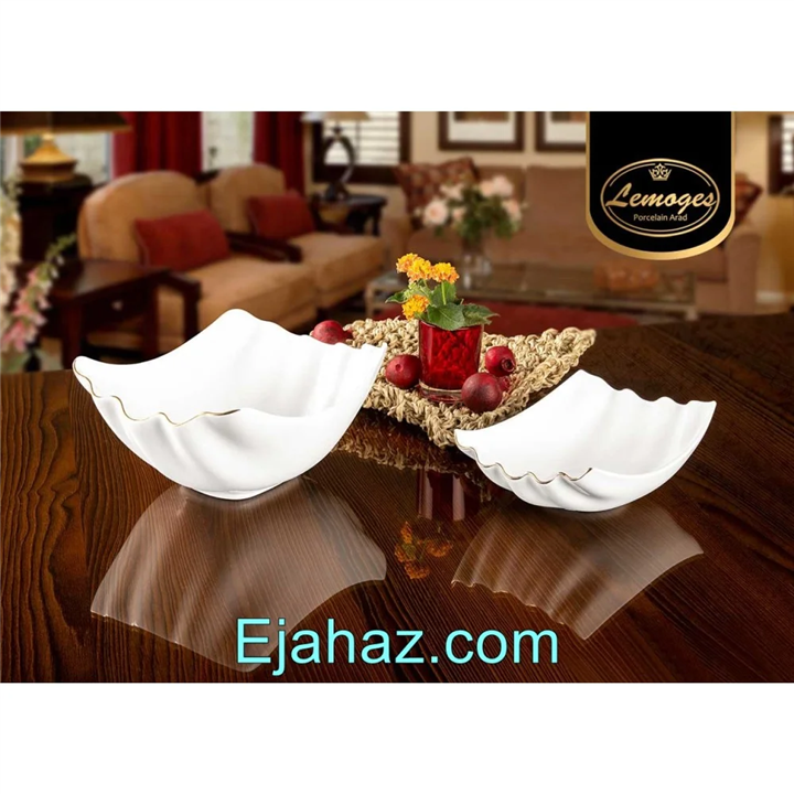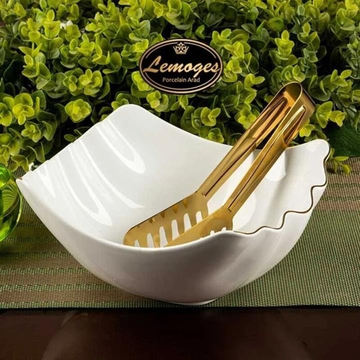 کاسه مربع لارن چینی لمون سایز بزرگ خط طلا 420L