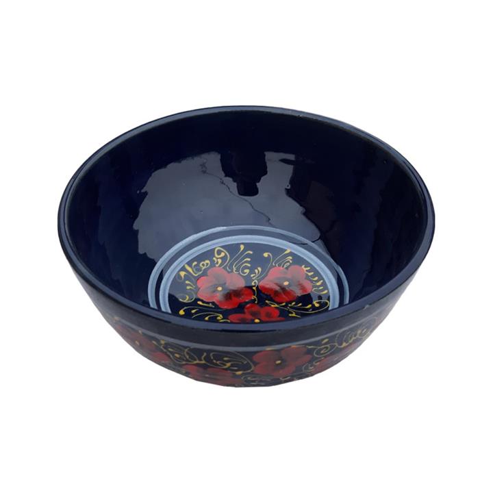 کاسه سفالی طرح گل قرمز