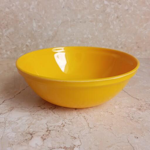 کاسه ماست خوری ملامین رنگ زرد مارک یزد ملامین دارای استاندارد مواد درجه یک تعداد شش عددی سایز 12.5 در ارتفاع 4