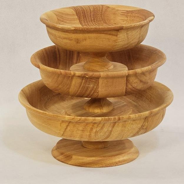 کاسه چوب رابر لبه دار پایه دار سه سایز