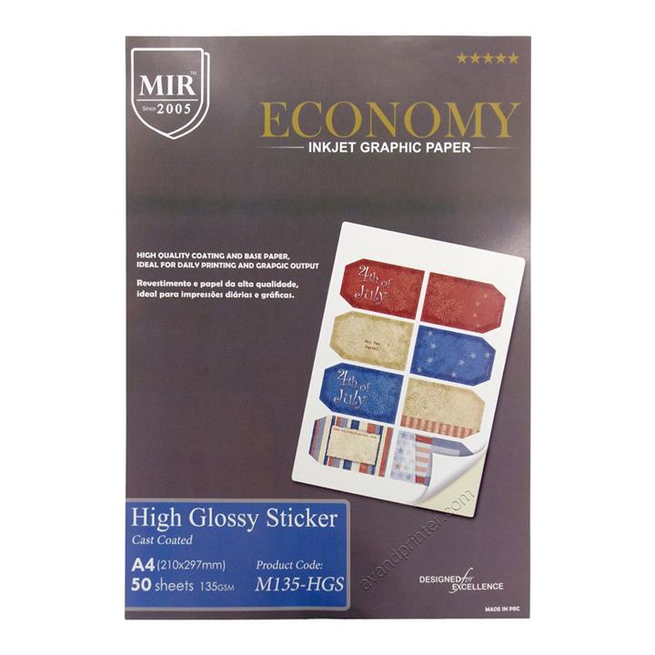 کاغذ A4 گلاسه پشت چسب دار برند Mir گرماژ 135