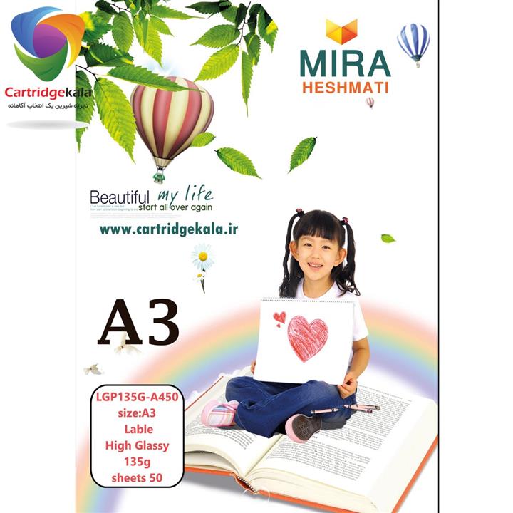 مشخصات فنی کاغذ پشت چسبدار فتوگلاسه جوهرافشان میرا مدل LGP135G-A350 سایز A3بسته 50 عددی