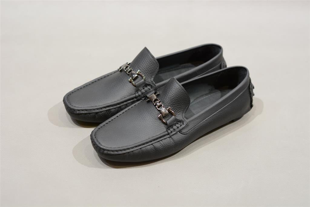 کفش کالج مردانه مدل چرم طبیعی رنگ طوسی