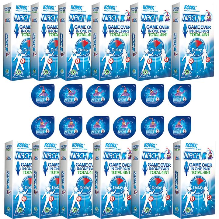 مشخصات فنی کاندوم تحریک کننده بانوان کدکس مدل Game Over In One Part Total 4in1 بسته 12 عددی