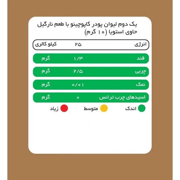 مشخصات فنی کاپوچینو با طعم نارگیل بدون شکر پپتینا بسته 10 عددی
