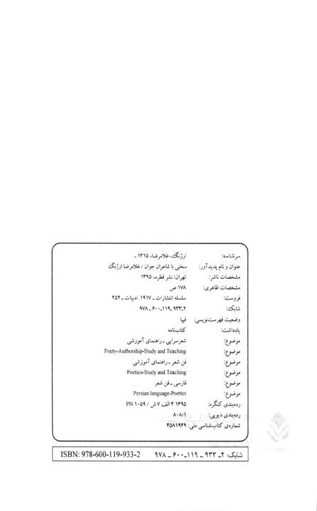 مشخصات فنی کتاب سخنی با شاعران جوان اثر غلامرضا ارژنگ