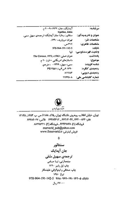 کتاب سنتائور به نویسندگی جان آپدایک توسط انتشارات مروارید منتشر شده است.