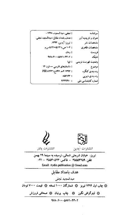 مشخصات فنی کتاب هدف،بامداد مقابل اثر عبدالمجید نجفی