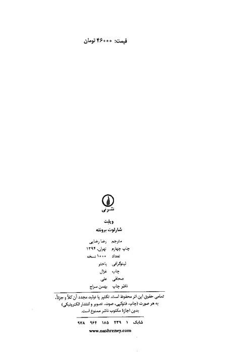 مشخصات فنی کتاب ویلت اثر شارلوت برونته