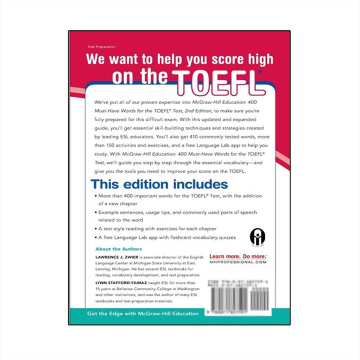 کتاب 400Must-Have Words for the TOEFL 2nd Edition اثر Lawrence J. Zwier انتشارات الوندپویان