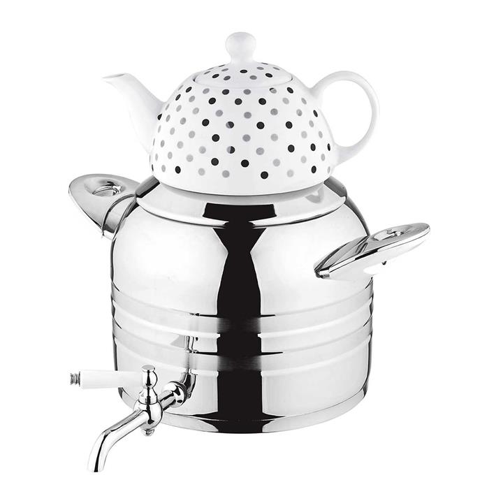 کتری قوری استیل، نقره ای، کف چدن، قوری چینی، گنجایش 6لیتر