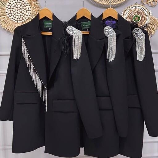 کت مجلسی زنانه کرپ مازراتی یقه بلیزر سردوشی نگین و پر با خرج کار زنجیری