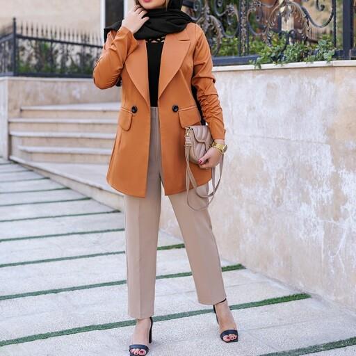 کت زنانه رسمی کرپ باربی آستر دار جیب نما کژوال فلورینا بُرنُس