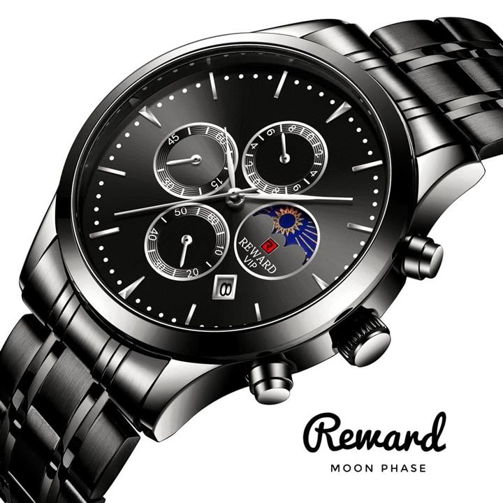 ساعت مردانه فلزی مارک ریوارد مدل 81011 سه موتوره فعال رنگ ثابت کیفیت عالی تقویم دار حک مارک روی قفل دارای جعبه و پاکت اصلی کد 1922440