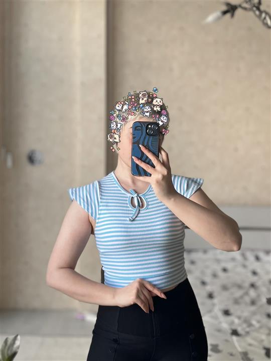 کراپ آستین پروانه ای راه راه آبی وارداتی سلیو