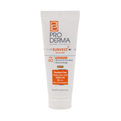کرم ضد آفتاب و مرطوب کننده بژ طبیعی SPF60 پرودرما مدل Sunves...