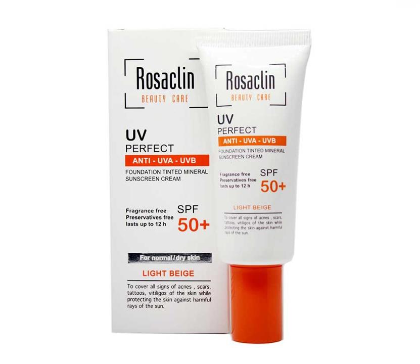 مشخصات فنی کرم ضد آفتاب رنگی رزاکلین مناسب پوست نرمال تا خشک مدل light beige