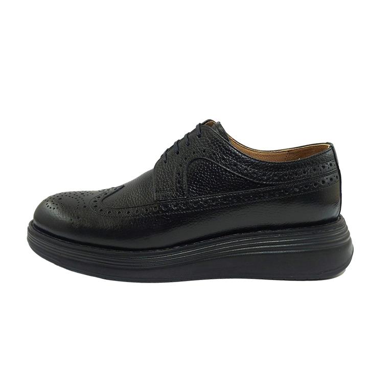 رویه و آستر این کفش چرم طبیعی بوده و کفی هفت لایه دست ساز این مدل نیز با چرم طبیعی گاوی بصورت انحصاری تولید شده و دارای لایه سازگار با خارپاشنه و بالشتک گردش هوا میباشد، که با کاهش فشار وارده و ایجاد حالت ارتجاعی هنگام راه رفتن از آسیب به زانو ها و ستون فقرات جلوگیری میکند.