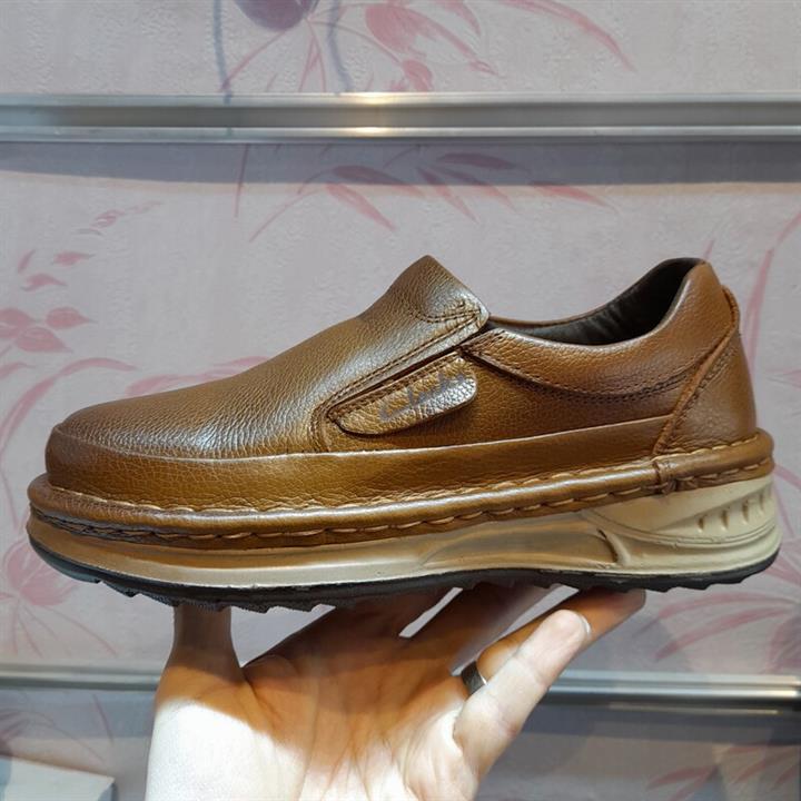 کفش مردانه تمام چرم خالص پوست طبیعی گاو تولید تبریز کلارک مخصوص پیاده روی روزمره راحتی کمر زانو پاشنه پا اسپرت بی بند