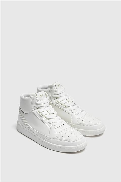 مشخصات فنی کفش چرم اسپرت سفید مدل چند تکه بنددار طرح توری پاشنه تخت زنانه پول اند بیر Pull & Bear (ساخت اسپانیا)