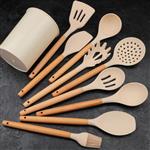 سرویس کفگیر و ملاقه 10 پارچه سیلیکونی دسته چوب یونیک کد 1175