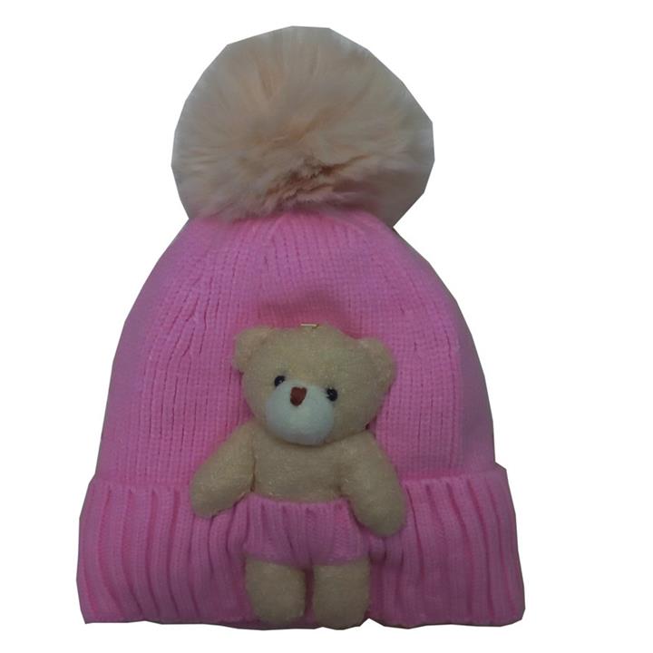کلاه دخترانه مدل زمستانی خرسی رنگ صورتی