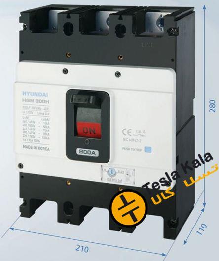 کلید اتوماتیک،کمپکت 630 آمپر،قابل تنظیم حرارتی-ثابت مغناطیسی HYUNDAIمدلHGM
