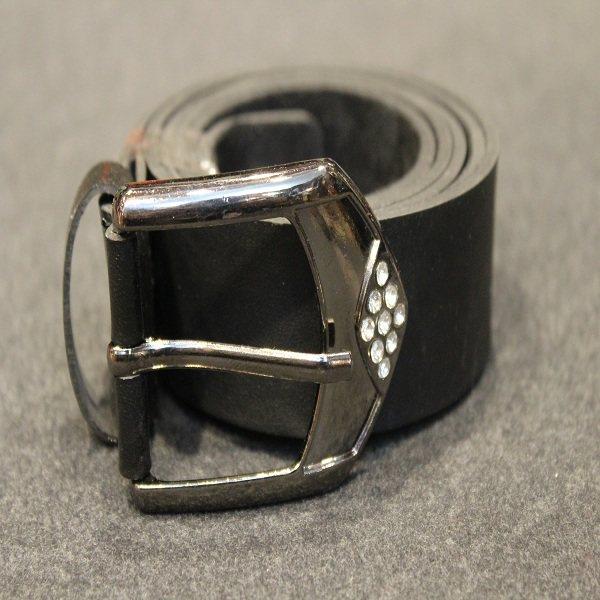 کمربند زنانه مشکی با سگک مستطیلی طلایی و نگیندار