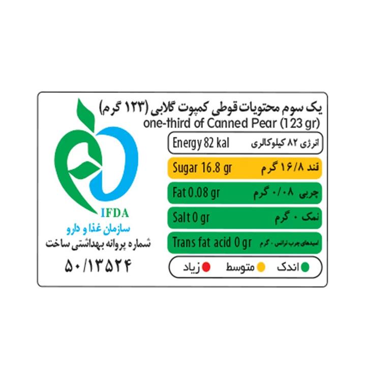 مشخصات فنی کمپوت گلابی شهدین - 370 گرم بسته 12 عددی