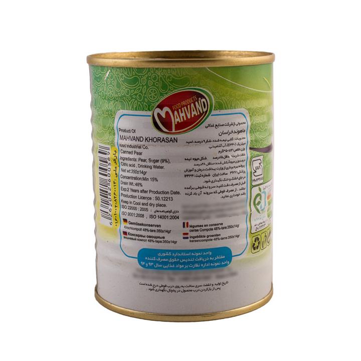 مشخصات فنی کمپوت گلابی ماهوند - 350 گرم