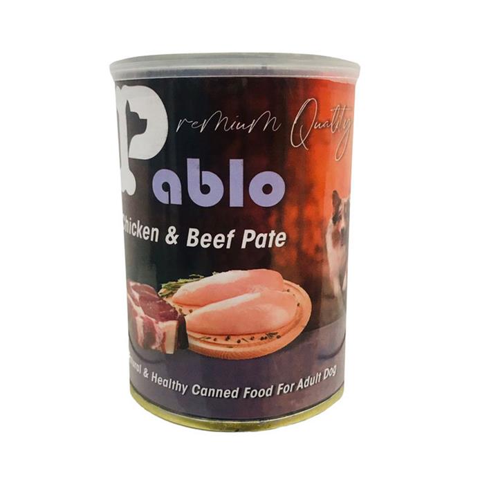 کنسرو پته سگ پابلو طعم مرغ و گوشت وزن 400 گرم