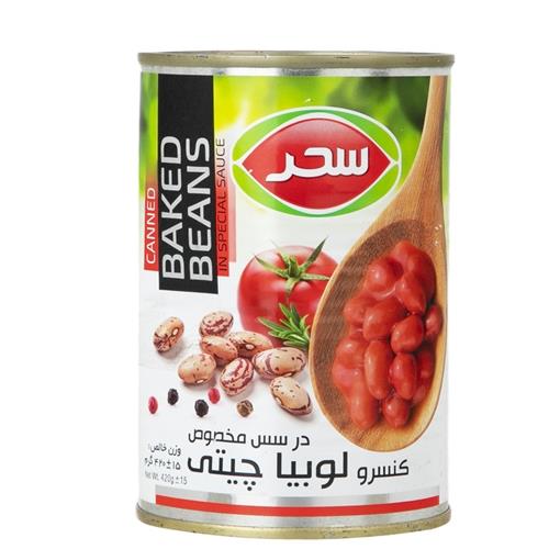 کنسرو لوبیا چیتی در سس مخصوص سحر 420 گرم