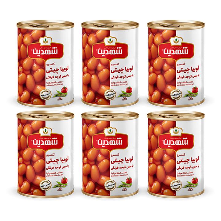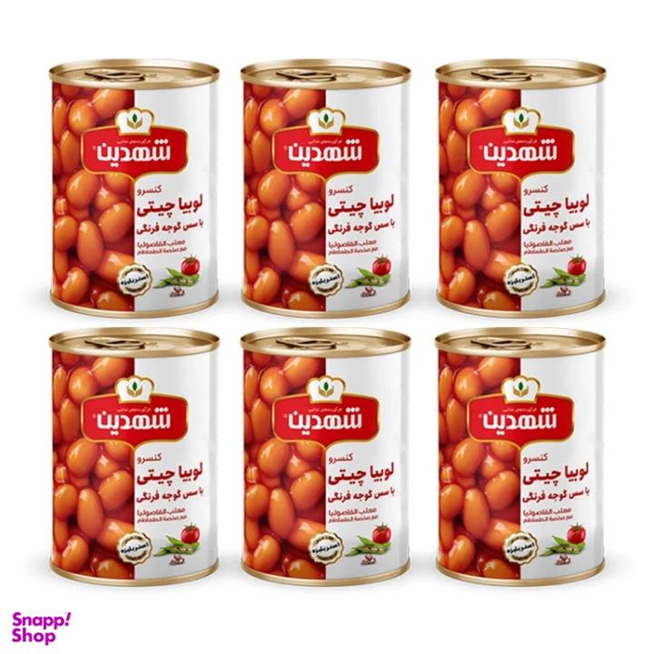 کنسرو لوبیا چیتی با سس گوجه فرنگی شهدین - 370 گرم بسته 6 عددی
