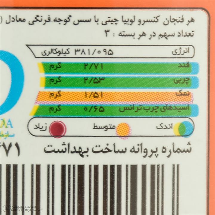 مشخصات فنی کنسرو لوبیا چیتی با سس گوجه فرنگی هایلی - 380 گرم