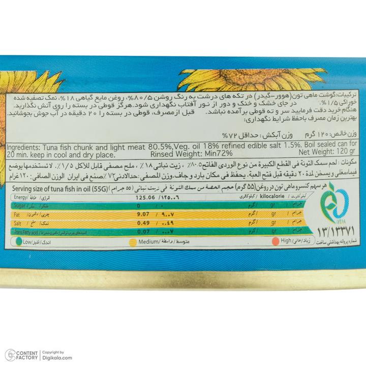 مشخصات فنی کنسرو ماهی تون در روغن هایلی - 120 گرم
