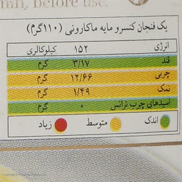 مشخصات فنی کنسرو مایه ماکارونی سمیه - 420 گرم