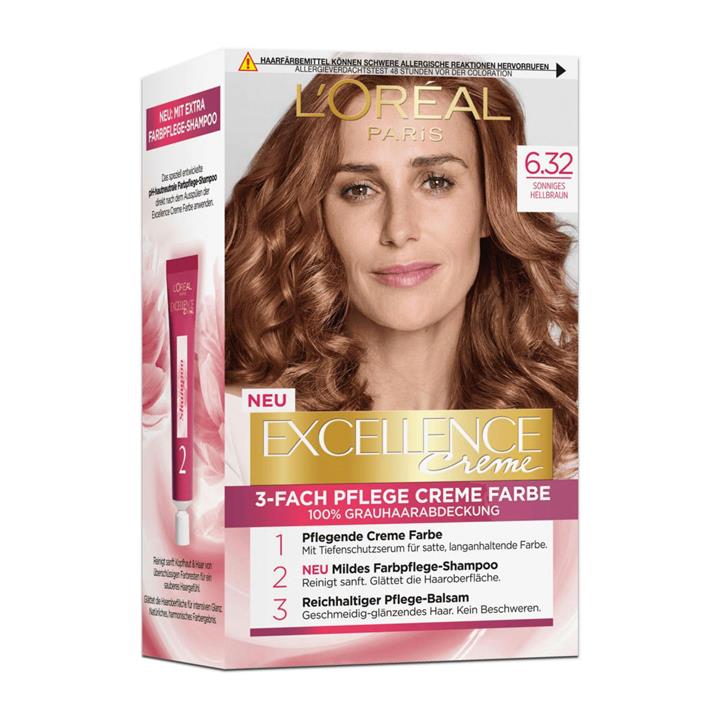 کیت رنگ مو قهوه ای طلایی روشن-6.32 لورآل مدل Excellence